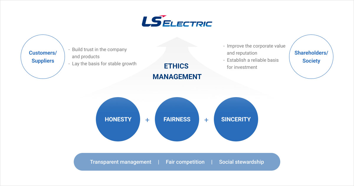 LS ELECTRIC, serbest piyasa ekonomisinin düzenine ve hakim serbest ve adil rekabet ilkesine saygı göstererek, karşılıklı güven ve işbirliğine dayalı olarak tüm paydaşlarının ortak çıkarlarını gözeterek, dünyanın en iyi şirketi olarak sürekli gelişmeyi amaçlamaktadır. Bu nedenle, tüm LS ELECTRIC görevlilerinin ve çalışanlarının uyması gereken doğru eylemleri ve muhakeme değerlerini belirleme kriteri olarak bu etik kurallarını benimsiyor ve uygulamayı taahhüt ediyoruz.